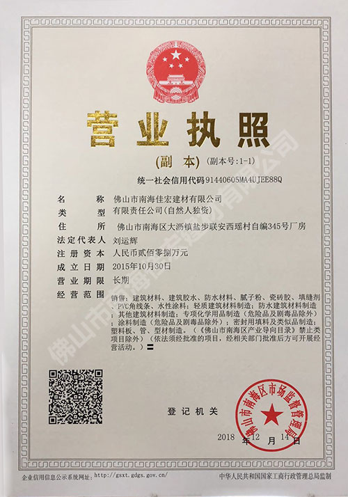 以不斷創(chuàng)新發(fā)展的精神給您提供最優(yōu)質(zhì)完善的產(chǎn)品佛山市南海佳宏建材有限公司是一家專業(yè)從事研發(fā)、生產(chǎn)、銷售環(huán)保建筑材料的綜合性企業(yè),主要經(jīng)營銷售:建筑材料;加工、銷售:建筑膠水、防水材料、膩子粉、瓷磚膠、填縫劑、PVC角線條、水性涂料。經(jīng)過多年的發(fā)展,本公司已擁有雄厚的技術(shù)力 量,一批高素質(zhì)的管理人員、銷售人員和專業(yè)的生產(chǎn)人員。先后多次派出技術(shù)人員參加全國、省、市 等有關(guān)部門組織的專業(yè)技術(shù)培訓(xùn),并取得了相應(yīng)的資格證書。